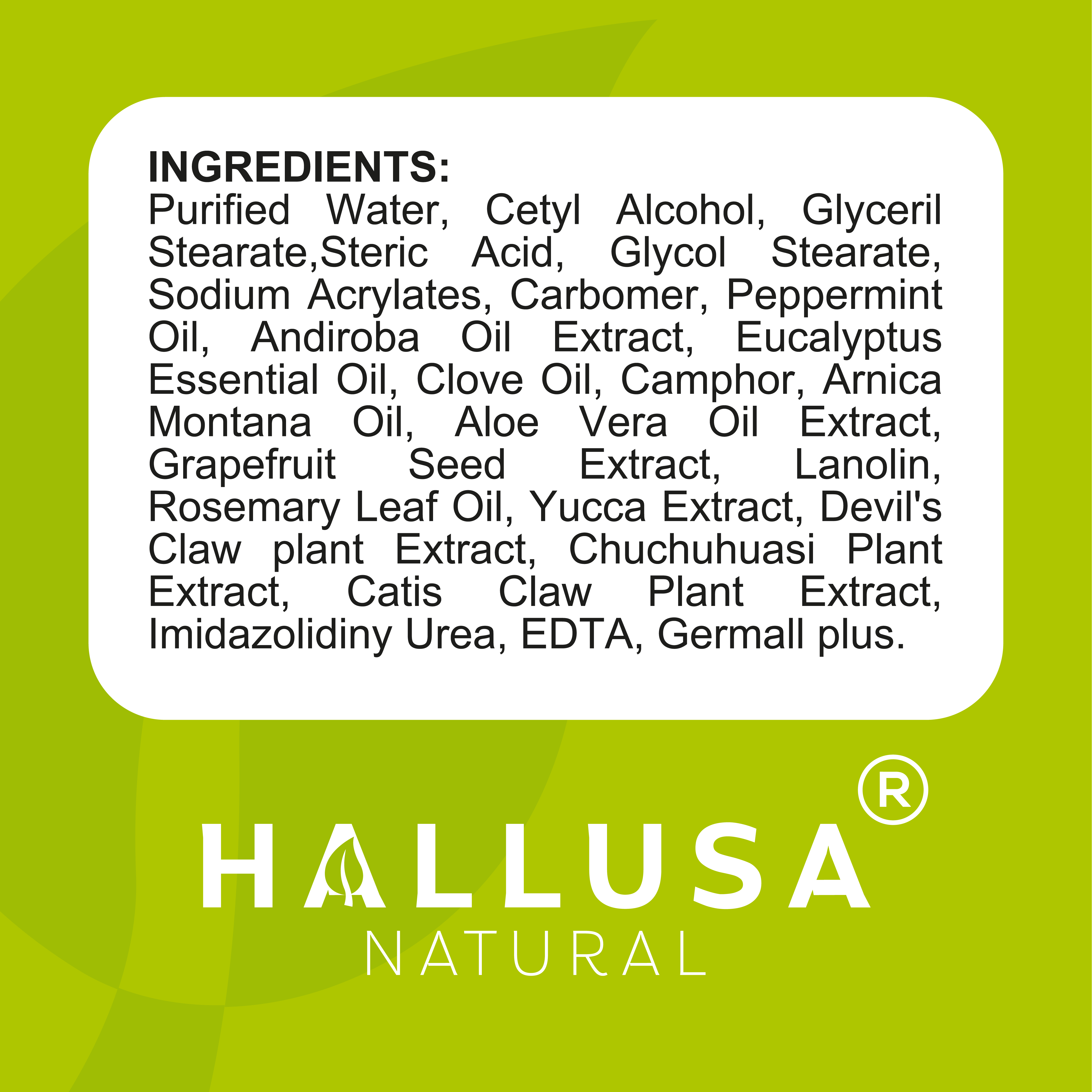 Disclaimer At HALLUSA NATURAL, we strive to ensure the accuracy of product information and images. However, they may be pending on our website, updates on presentation changes and/or ingredients used in manufacturing. Although occasionally, we can send articles with an alternative presentation, freshness is always guaranteed. We recommend that you read the manufacturer’s label information, instructions and warnings before using these products and not just rely on the information provided by HALLUSA NATURAL.