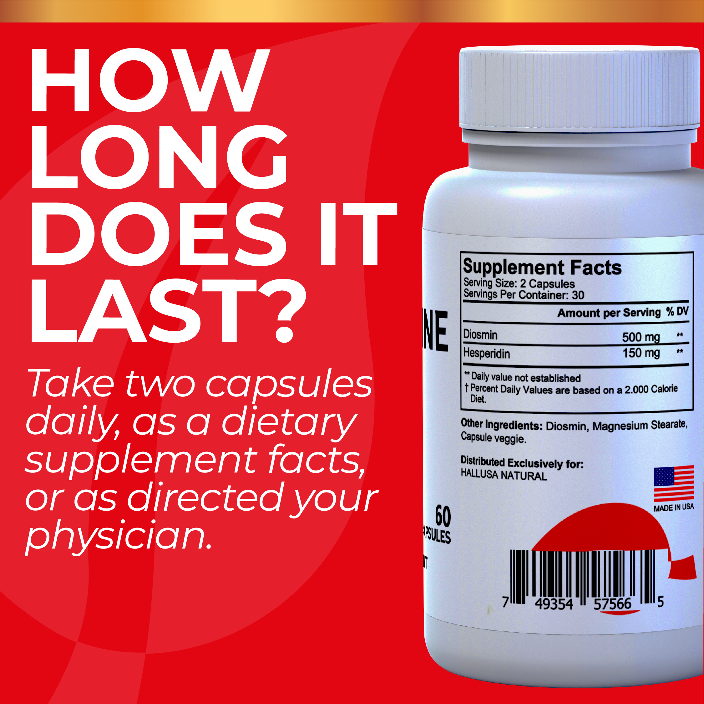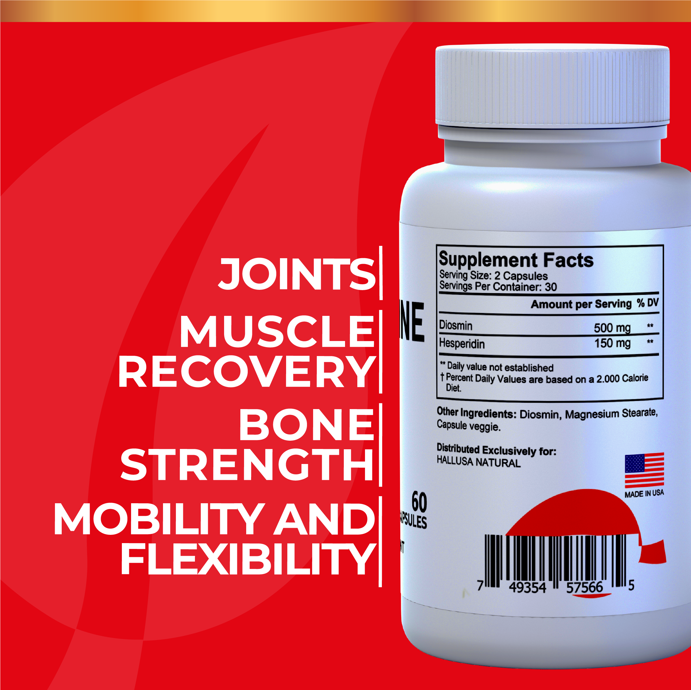 Hallosmine Ultra - Diosmin 500 mg Circulation Support + Hesperidin 150 mg from HALLUSA NATURAL