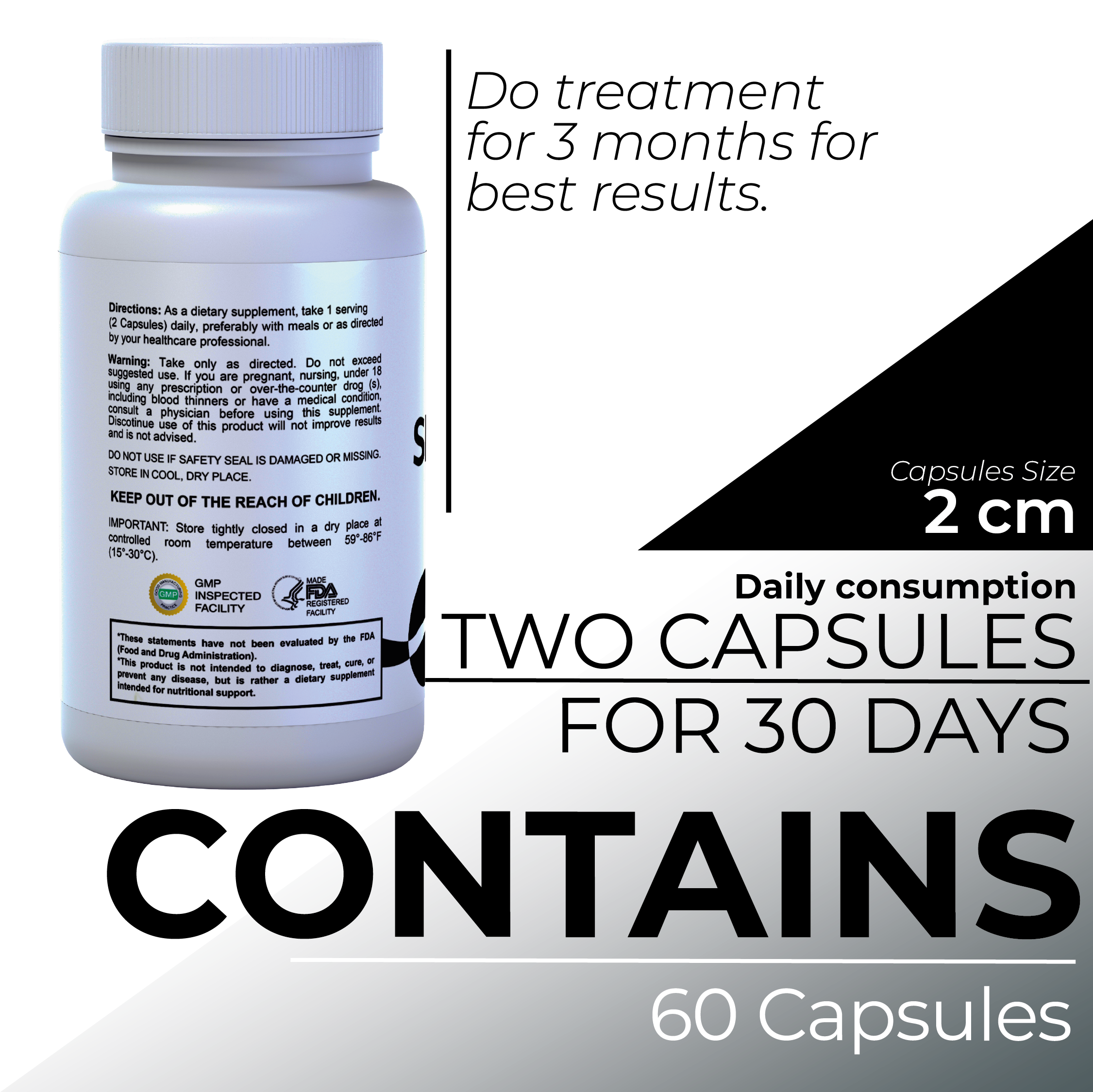 Take 2 capsules daily preferably with meals, as a nutritional supplement for adults or according to prescription (DO TREATMENT FOR 3 MONTHS). Do not exceed the suggested use without first consulting a health professional.