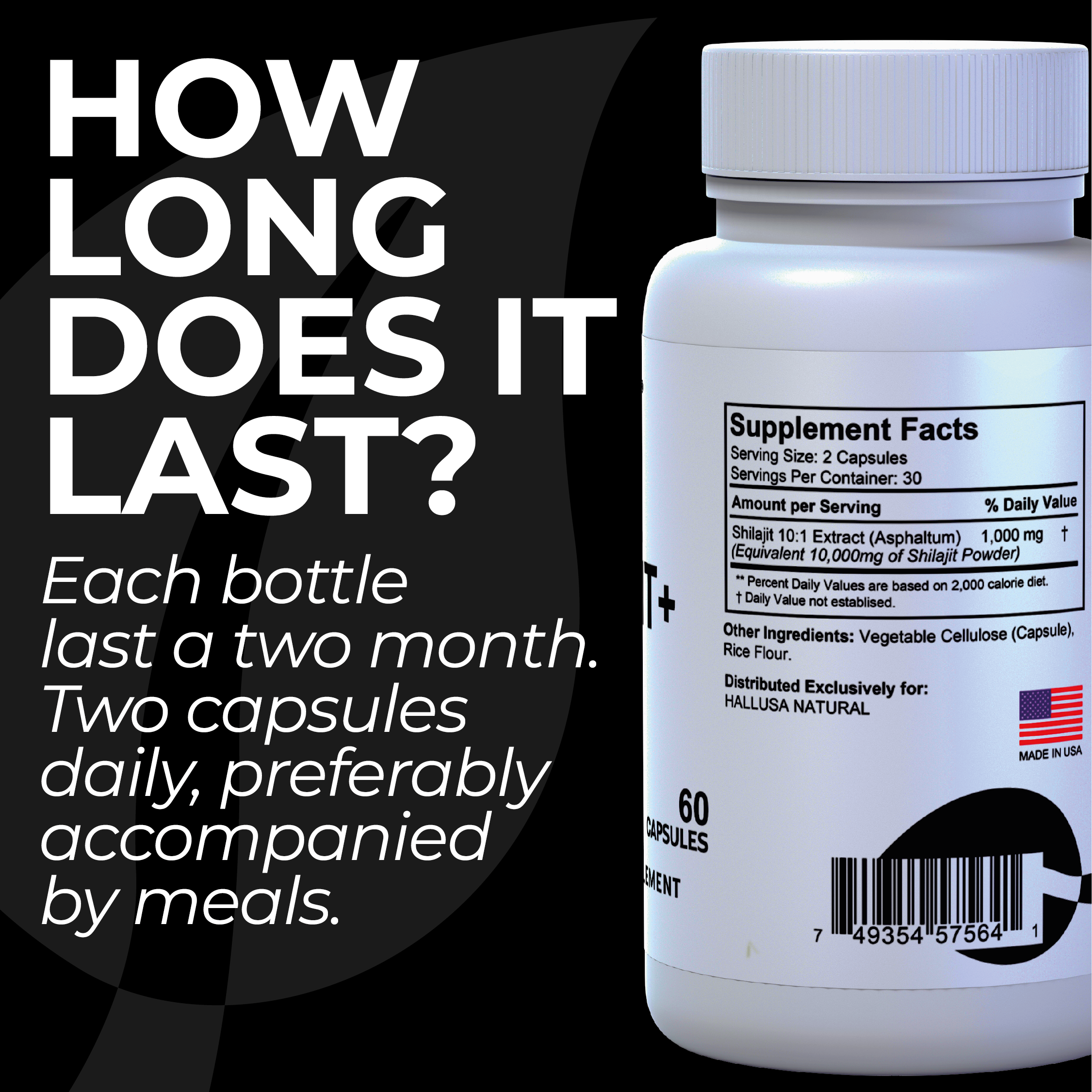 POTENT EXTRACT: Equivalent of 10,000 mg of Shilajit powder in each quick-release capsule.
